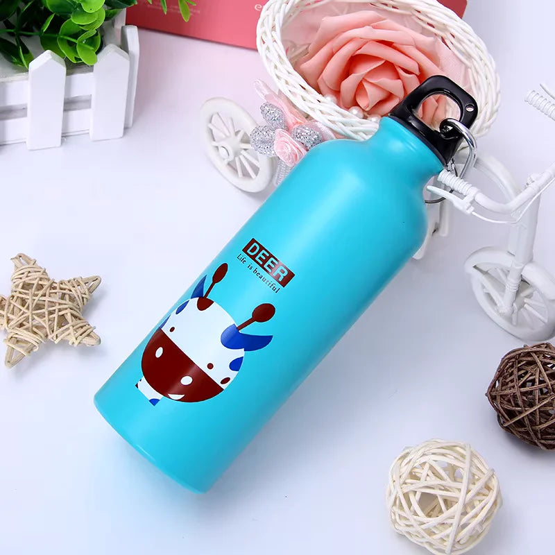 Con una capacidad de 500 ml, estas botellas son prácticas y ligeras, con un tamaño adecuado (21 x 6,5 cm) para mochilas o bolsos de colación. Vienen en cuatro colores y con lindos patrones de animales, ¡una opción divertida y segura para los más pequeños!"