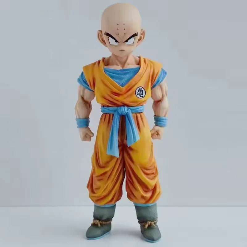 Krillin (18 cm – 218 g): Con su traje tradicional naranjo del Maestro Roshi, llevando el icónico kanji en el pecho y la espalda.