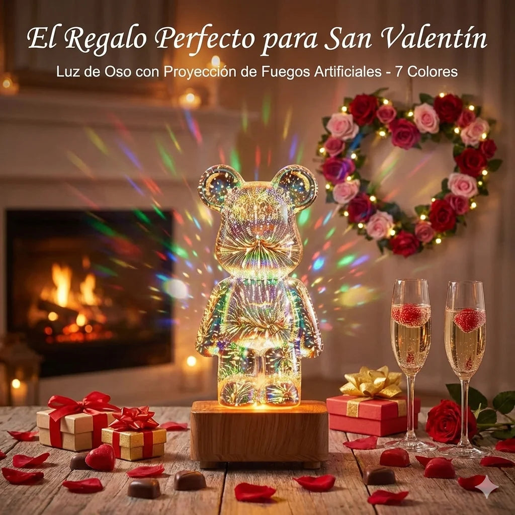 Transforma cualquier espacio con esta encantadora lámpara en forma de oso, que proyecta luces 3D en forma de fuegos artificiales con 7 colores impresionantes. Ideal para aportar un toque único y moderno a la decoración de tu hogar.